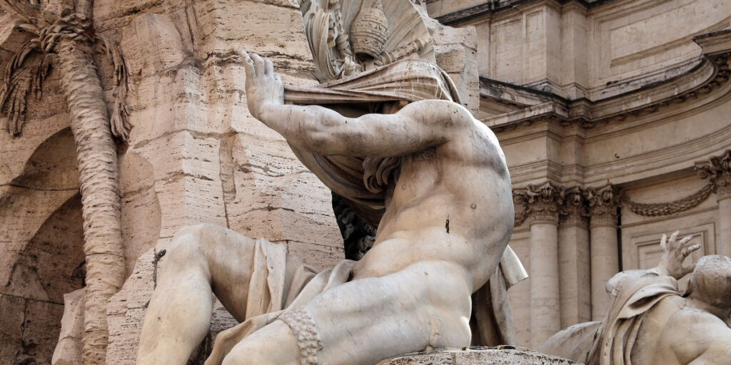 В самом сердце Рима, среди зданий в стиле барокко, уличных артистов и кафе с видом на площадь, на площади Навона доминирует фонтан Четырех Рек, словно сцена из камня, воды и света. Это не просто фонтан, а гигантский театр под открытым небом, где монументальные скульптуры, животные, растения и символические элементы взаимодействуют в вихре движения и смысла. Созданный Жаном Лоренцо Бернини в середине XVII века, фонтан мастерски сочетает архитектуру, скульптуру и гидротехническое строительство: вокруг него четыре колоссальные фигуры рек представляют известные в то время континенты.