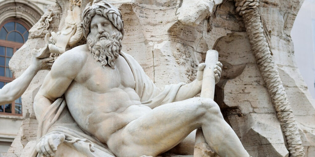 Нил олицетворяет Африку и мгновенно узнаваем по своему «завуалированному» истоку. Эта вуаль не просто декоративный элемент, а точный символ: она указывает на то, что во времена Бернини исток Нила был еще неизвестен европейцам. Поэтому африканская река воспринималась как таинственный гигант, имеющий решающее значение для плодородия земель, которые она пересекает, но отчасти окутанный тайной.