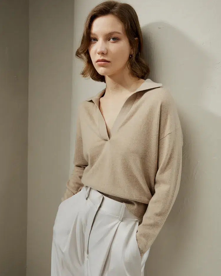 Элегантный, удобный и активный свитер с воротником. Толстые швы являются обычным явлением для этой одежды, которую в этом сезоне можно найти в бежевом, графитово-сером, лимонно-желтом и пастельно-розовом цветах. Если вы любите экспериментировать, выберите крупный узор и яркие цвета, например оранжевый, ярко-зеленый или лососевый. Он будет идеально сочетаться с длинной юбкой и кроссовками, а также с длинным осенним пальто.