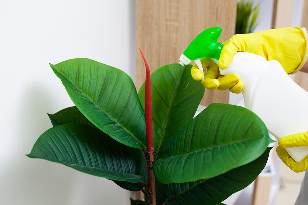 - Чистите натуральные и искусственные зеленые растения с помощью пульверизатора, смоченного уксусной водой, и мягкой ткани.