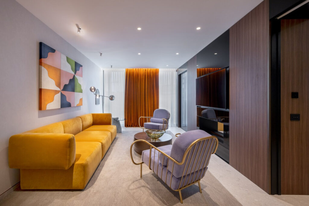 Архитектурная концепция разработана компанией Genius Loci Architettura, а интерьеры общих зон спроектированы международной командой AvroKO. В результате получилось пространство, сочетающее в себе ретро-элементы, высококачественные материалы и яркие цветовые акценты, создающее баланс между традицией и современностью.