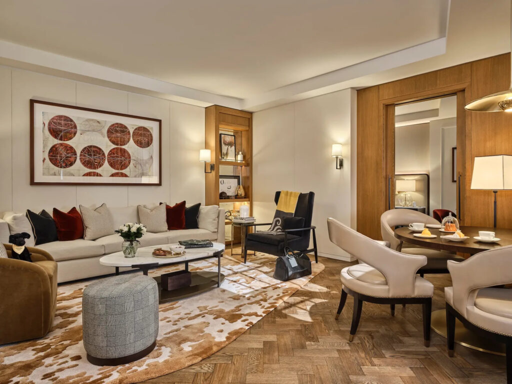Хотя отель Corinthia London славится своим величием, номера здесь более уютные (деревянные панели, нейтральная цветовая гамма, непринужденные пледы). Новые люксы, которые больше похожи на мини-апартаменты, особенно пропитаны атмосферой «дома вдали от дома» (бархатистая мебель землистых тонов, ковры с коровьим принтом и ширмы в каждой комнате). Самое главное — роскошные и удобные кровати.