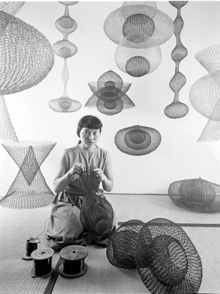 Художница Рут Асава создает скульптуры из проволоки, Калифорния, США, ноябрь 1954 года; изображение: Нат Фарбман/The LIFE Picture Collection/Shutterstock; произведение искусства: © 2026 Ruth Asawa Lanier, Inc., любезно предоставлено David Zwirner