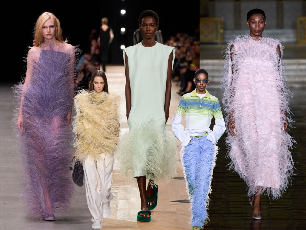 Дизайнеры, в том числе Стелла Маккартни, Прабал Гурунг и Касабланка, придали отделке из перьев легкость и изящество, великолепно применив их к джинсовой ткани. Два крупных дебюта — Пьерпаоло Пикколи в Balenciaga и Луиза Троттер в Bottega Veneta — также использовали эти перья из оптоволокна, благодаря чему одежда выглядела так, будто она состоит из живых организмов. Маккартни, как всегда, воспользовалась возможностью для новаторства, создав свои платья с перьями из раскрашенных травинок.